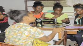 Six-month programme provides out-of-school girls and young women with skills training in either sewing, shoe making, or fish farming, as well as information on small business management.